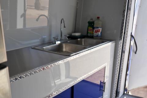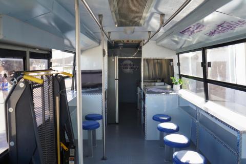 El camión está equipado con plancha, quemadores industriales, freidora, baño maría, refrigerador, microondas, licuadora, tarja con depósitos de agua potable y residual, extractor industrial, así como gabinetes de almacenamiento, generador de electricidad, equipo de gas y sistema de climatización.