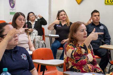 El Gobierno del Estado, a través de la Secretaría de Desarrollo Humano y Bien Común (SDHyBC) impartió el taller de Lengua de Señas Mexicana (LSM), a personal de la Subsecretaría de Movilidad.