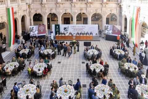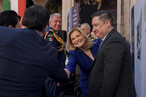 El general de Brigada de Estado Mayor y comandante de la 5/a Zona Militar, Felipe González Moreno, agradeció a la Gobernadora por acompañarlos en la conmemoración de esta organización, que subrayó, busca ser un pilar y garante para la soberanía nacional, con el compromiso de proteger al país y a la ciudadanía.