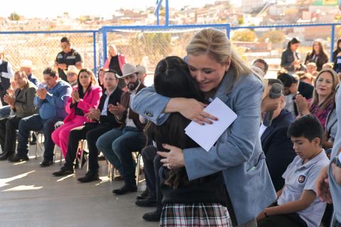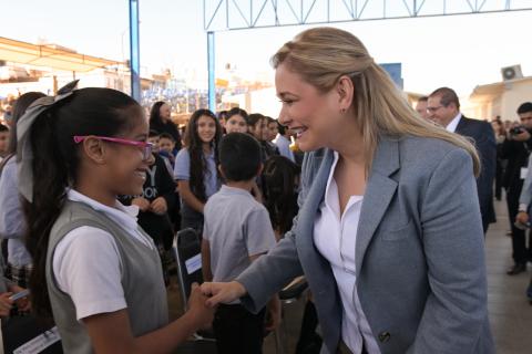 La mandataria estatal afirmó a los alumnos de la escuela primaria Estatal “Insurgentes”, donde se efectuó la ceremonia, que la intención de su Gobierno es que puedan cumplir sus sueños, porque son valiosos.