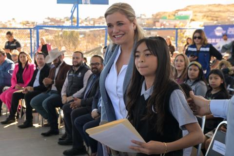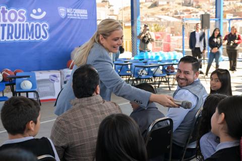 La gobernadora Maru Campos encabezó en Parral la entrega de mobiliario y equipo, para 110 escuelas de municipios de la región sur del estado, en los que son atendidos más de 25 mil niñas y niños.