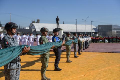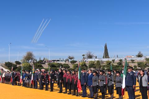En el acto estuvieron presentes el general Felipe González, comandante de la 5/a Zona Militar; el general Humberto Ibarra, comandante interino de la Región Aérea Militar del Noroeste; el general Alejandro Rivas, coordinador estatal de la Guardia Nacional y el diputado Guillermo Patricio Ramírez, presidente del Congreso del Estado.