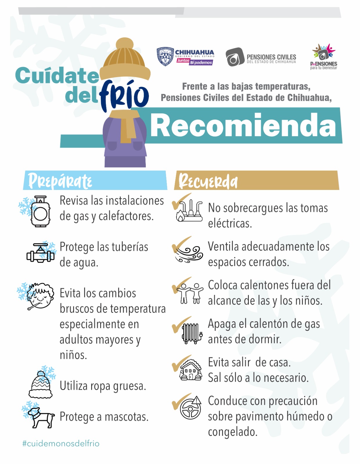 Ante las bajas temperaturas presentes en el estado, la Dirección Médica de Pensiones Civiles del Estado (PCE) emitió una serie de recomendaciones para protegerse de enfermedades respiratorias, y resaltó la importancia de vacunarse contra la influenza para prevenir el riesgo de daños a la salud por este padecimiento.