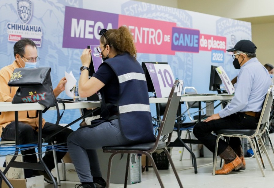 Con el fin de asesorar a la población que tenga alguna duda con respecto al canje de placas y sus adeudos vehiculares, la Secretaría de Hacienda habilitó una serie de módulos de atención personalizada en los megancentros de canje de placas en Chihuahua, Juárez, Delicias y Cuauhtémoc.
