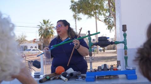 La Junta Municipal de Agua y Saneamiento (JMAS) de Chihuahua llevó el curso “Plomería para Mujeres” a la colonia Villas del Real, donde integrantes del club del abuelo aprendieron sobre el funcionamiento de las redes internas y externas de agua potable en los domicilios.