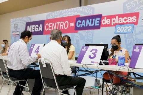 La oficina de Recaudación de Rentas en Ciudad Juárez informó que este sábado 23 de julio estarán abiertos tres megacentros y cuatro módulos para atender el trámite de canje de placas, a partir de las 9 de la mañana y hasta las 2 de la tarde.