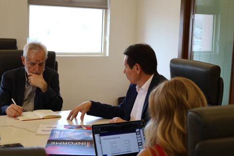 Con el fin de dar seguimiento a los acuerdos para mejorar el servicio médico de los derechohabientes de Pensiones Civiles del Estado (PCE), el secretario de Hacienda, José de Jesús Granillo y el director general de la institución, Heriberto Miranda, sostuvieron una reunión en Ciudad Juárez con autoridades sindicales.