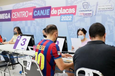 Con el fin de asesorar a la población que tenga alguna duda con respecto al canje de placas y sus adeudos vehiculares, la Secretaría de Hacienda habilitó una serie de módulos de atención personalizada en los megancentros de canje de placas en Chihuahua, Juárez, Delicias y Cuauhtémoc.
