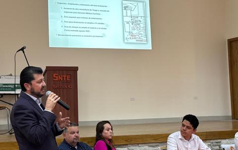 En cumplimiento de los compromisos derivados de la mesa de trabajo entre el Gobierno del Estado, la Secretaría de Hacienda, Secretaría de Educación y Deporte, Pensiones Civiles del Estado (PCE) y la Sección 42 del Sindicato Nacional de Trabajadores de la Educación (SNTE), se presentó un informe detallado sobre los avances y resultados en tres temas prioritarios: el mejoramiento del servicio médico, la regularización de adeudos de organismos afiliados y la atención en la aportación de 1,064 maestros.